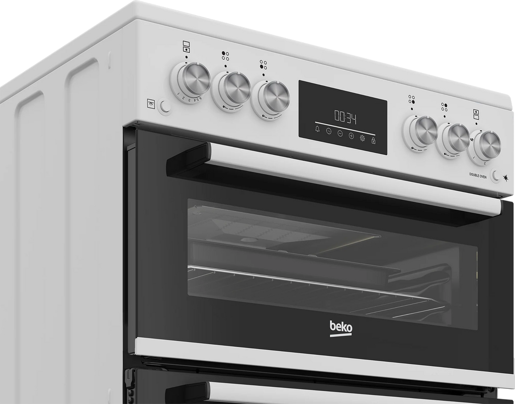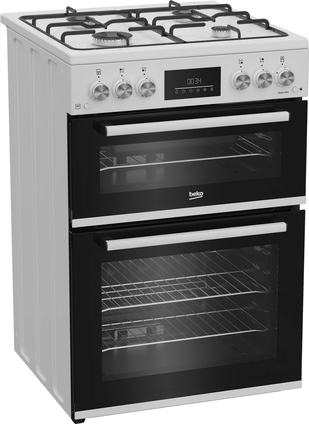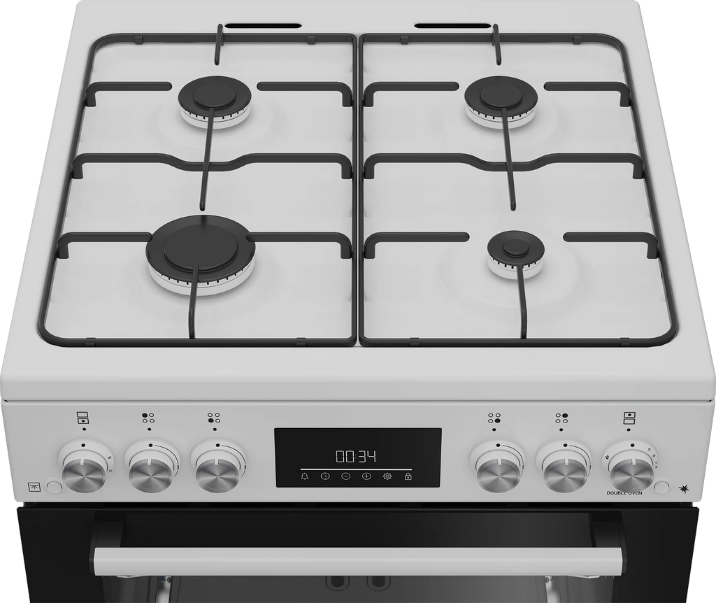 The Beko EDG6231W is a stylish and practical 60cm double oven gas cooker, exclusive to Euronics. Finished in classic white, it’s designed to offer everything you need for flexible family cooking. With a large 72L conventional main oven and a 32L top oven with integrated grill, there’s plenty of space to prepare a wide range of meals.