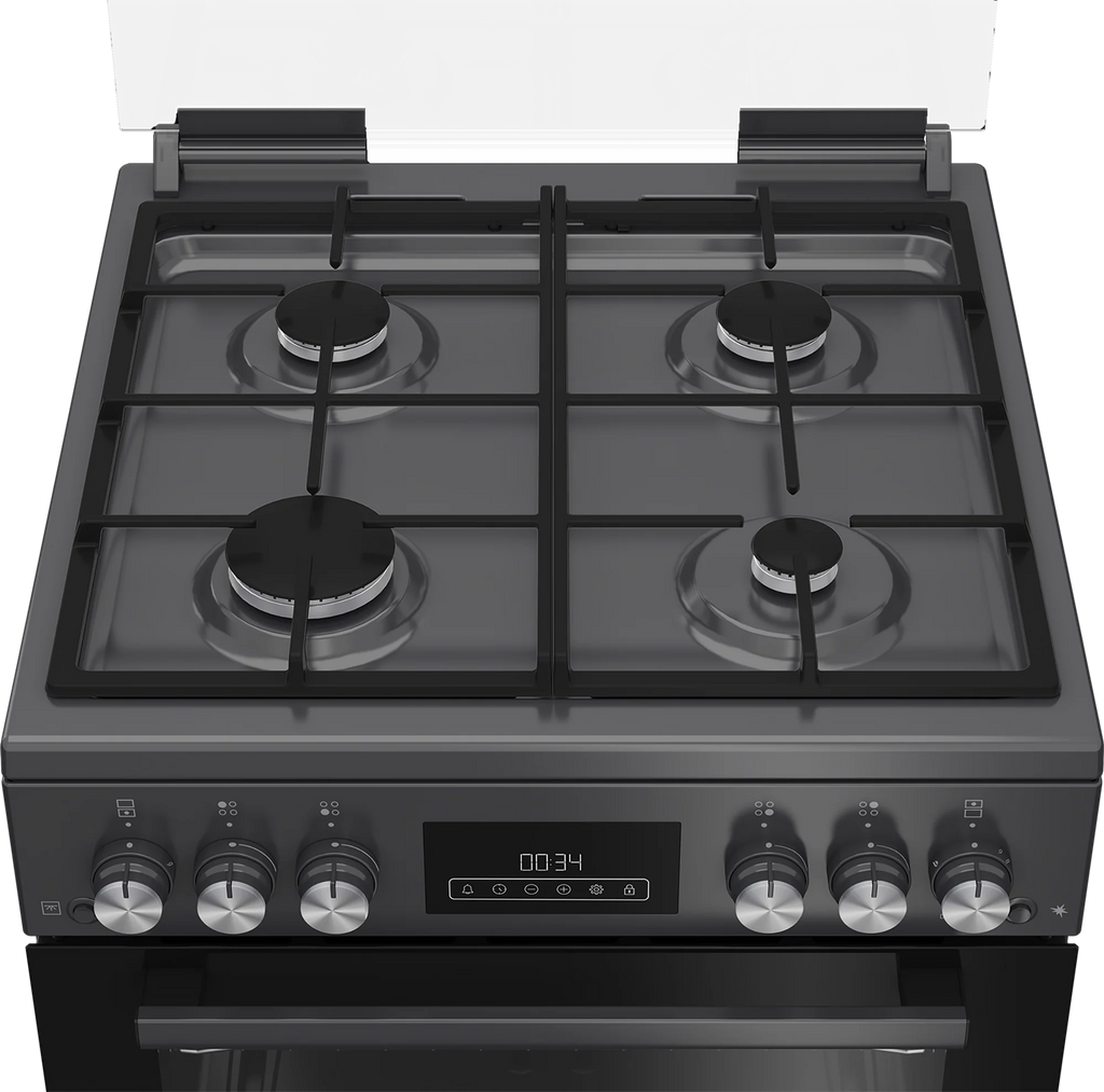 Available in a sleek anthracite design, the GGRN655N cooker lets you bake, grill, and fry to your heart’s content. Roast your Sunday joint and accompaniments in the spacious 72L main gas oven, ideal for preparing multiple dishes at once. It offers five shelf slots, three wire shelves, and a grill pan set included so you can get cooking straightaway.