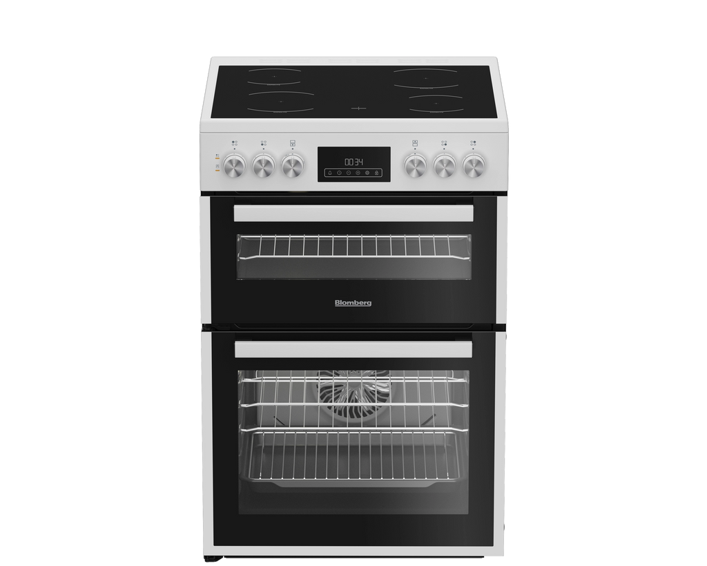 The Blomberg HKRN651W is a stylish 60cm double oven electric cooker designed for those who value efficiency and convenience in meal preparation. Its elegant white design complements any kitchen, while the vitroceramic hob provides rapid heating and easy cleaning. Featuring two spacious ovens, this cooker is perfect for preparing family meals or entertaining guests, catering to both novice and experienced cooks alike.