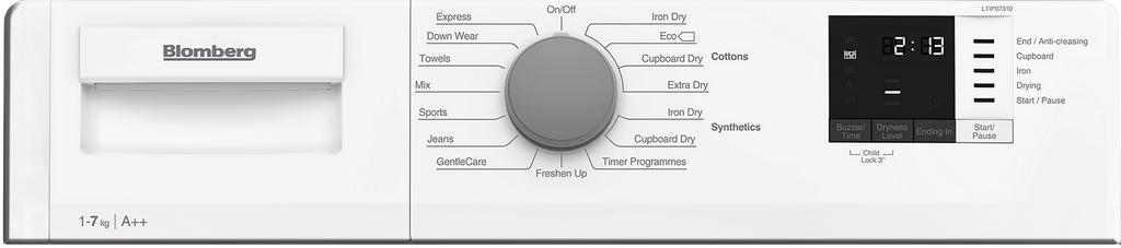 A large capacity of 7kg on the LTI07310 offers plenty of room to dry a family-sized load. With the ability to dry large loads at once, you’ll be saving valuable time. The dial and button controls are easy to use, and the included child lock will stop little hands from changing any settings.