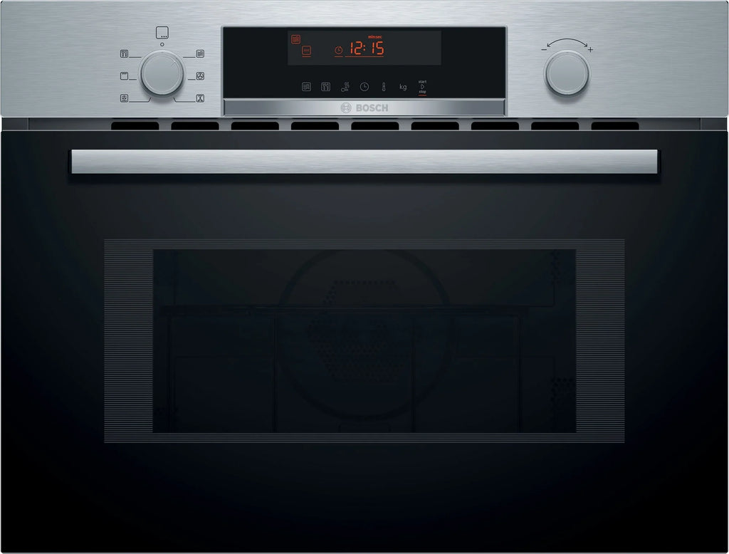 Level up mealtimes with the Bosch CMA583MS0B combination microwave. The HotAir feature evenly distributes heat around the 44L cavity for delicious results every time. Prepare any dish with ease thanks to the AutoPilot 15 – 15 automatic menus that take the guesswork out of cooking. Simply choose your dish, input the weight, and press start – the microwave automatically selects the ideal time, temperature, and cooking mode.