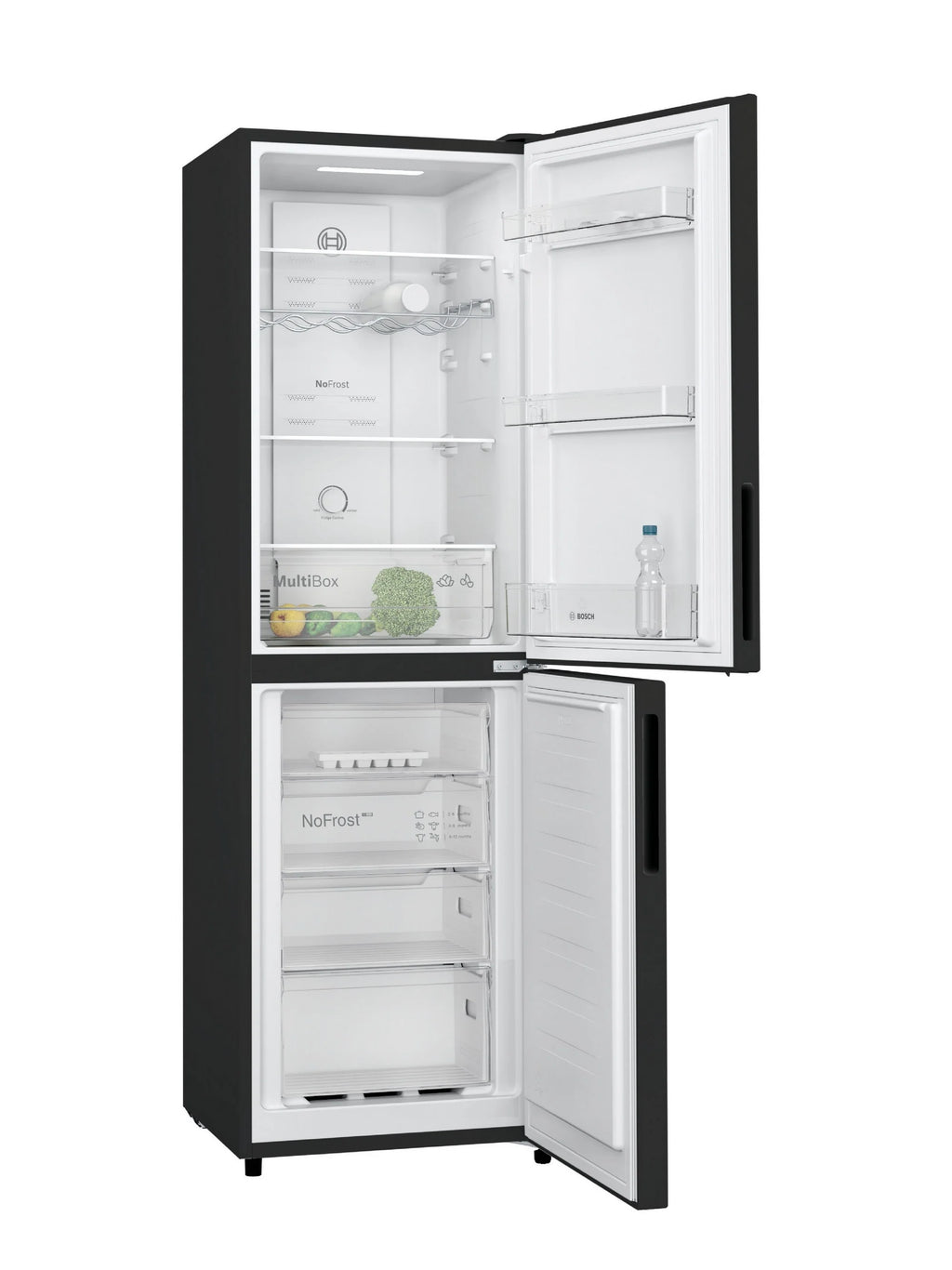 Bring reliable cooling performance and modern style to your kitchen with the Bosch KGN27NBEAG fridge freezer. With a 255-litre total capacity and a sleek black finish, this freestanding appliance offers both practicality and visual appeal.