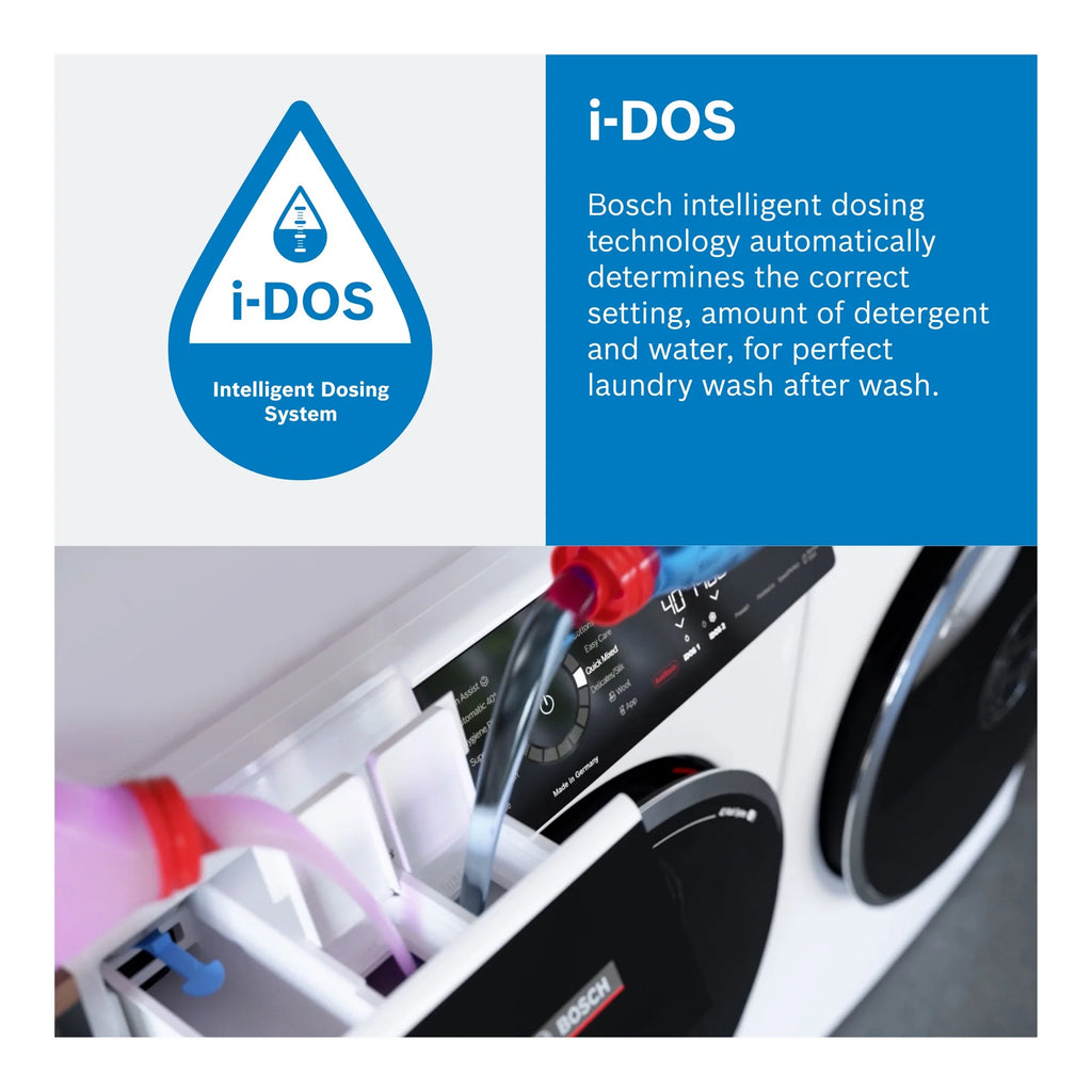 Take on stubborn stains with ease using the AntiStain programme, which adjusts temperature, drum movements, and soaking time automatically for optimal stain removal. For added convenience, the IronAssist steam feature reduces wrinkles, making ironing quicker and easier. The i-DOS automatic dosing system intelligently measures and dispenses the precise amount of detergent needed, saving time, detergent, and water.