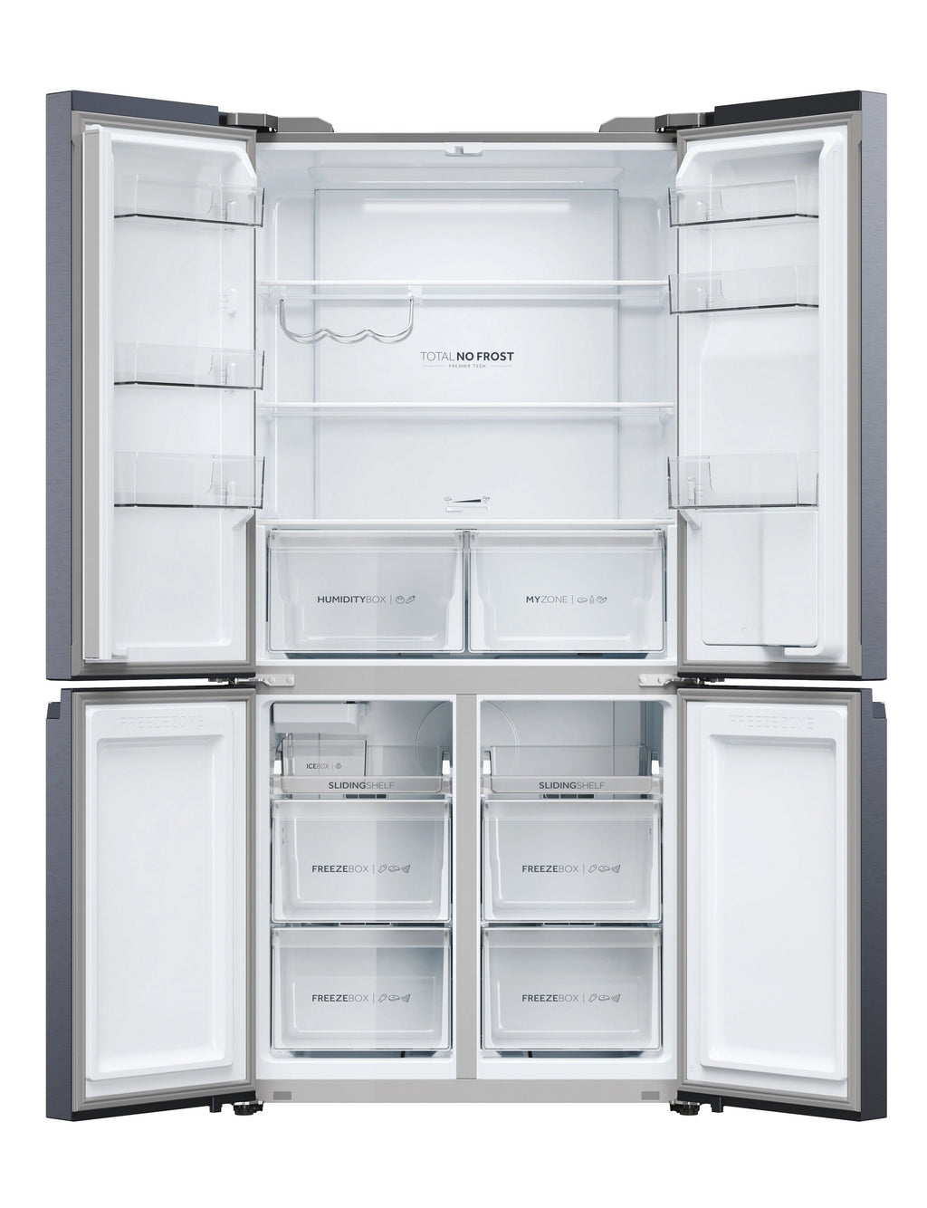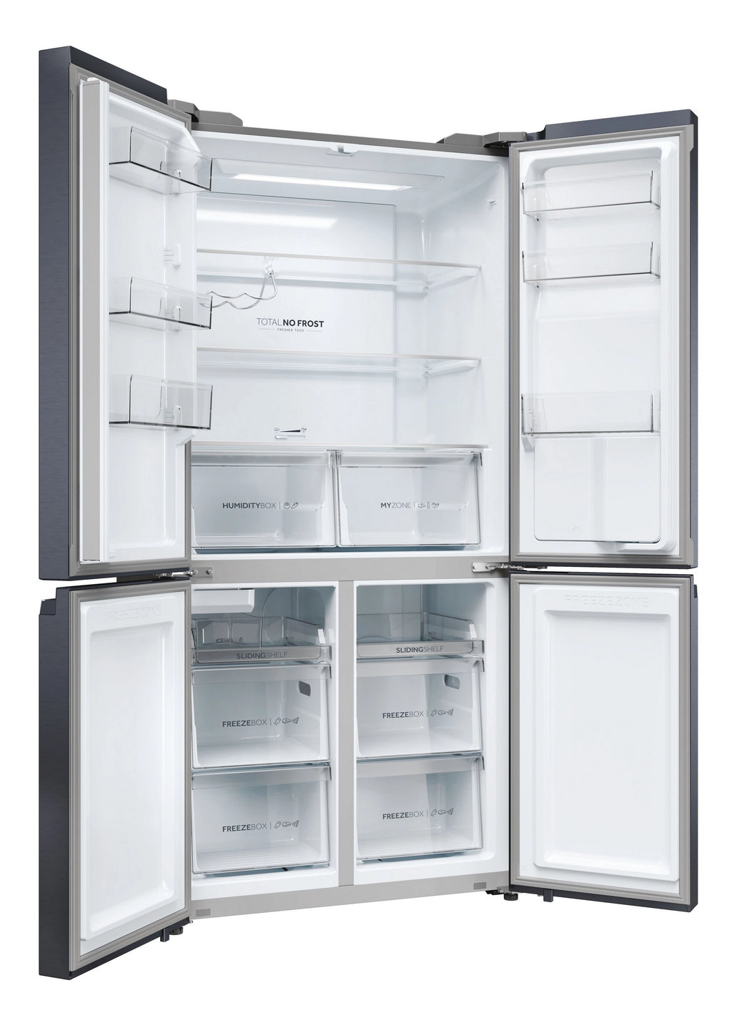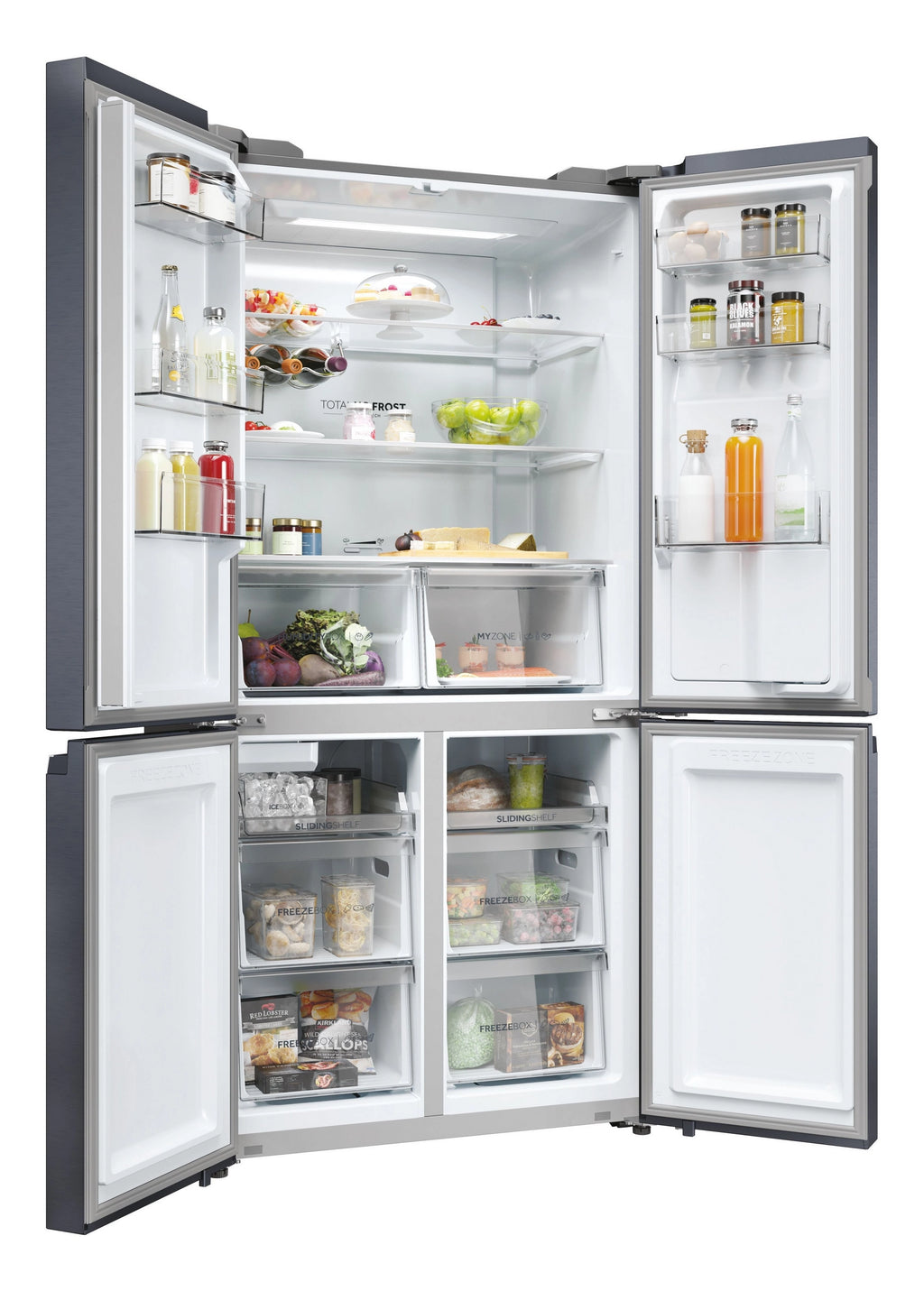 This stunning American-style fridge freezer from Haier is equipped with a range of technology for optimal food storage. MyZone allows you to adjust the temperature within the compartment quickly and easily depending on your storage needs at the time. With a simple touch, just choose the temperature to suit the food you’re storing. The Humidity Zone drawer keeps your fruit and vegetables fresh two times longer too, thanks to constantly monitoring humidity levels. The automatic plumbed-in water dispenser provides clean, filtered water when you need it. And, the auto ice maker will provide cubed ice for a variety of uses. As the brushed black HCR5919EHMB is a Total No Frost model, you won’t need to worry about ice build-up.