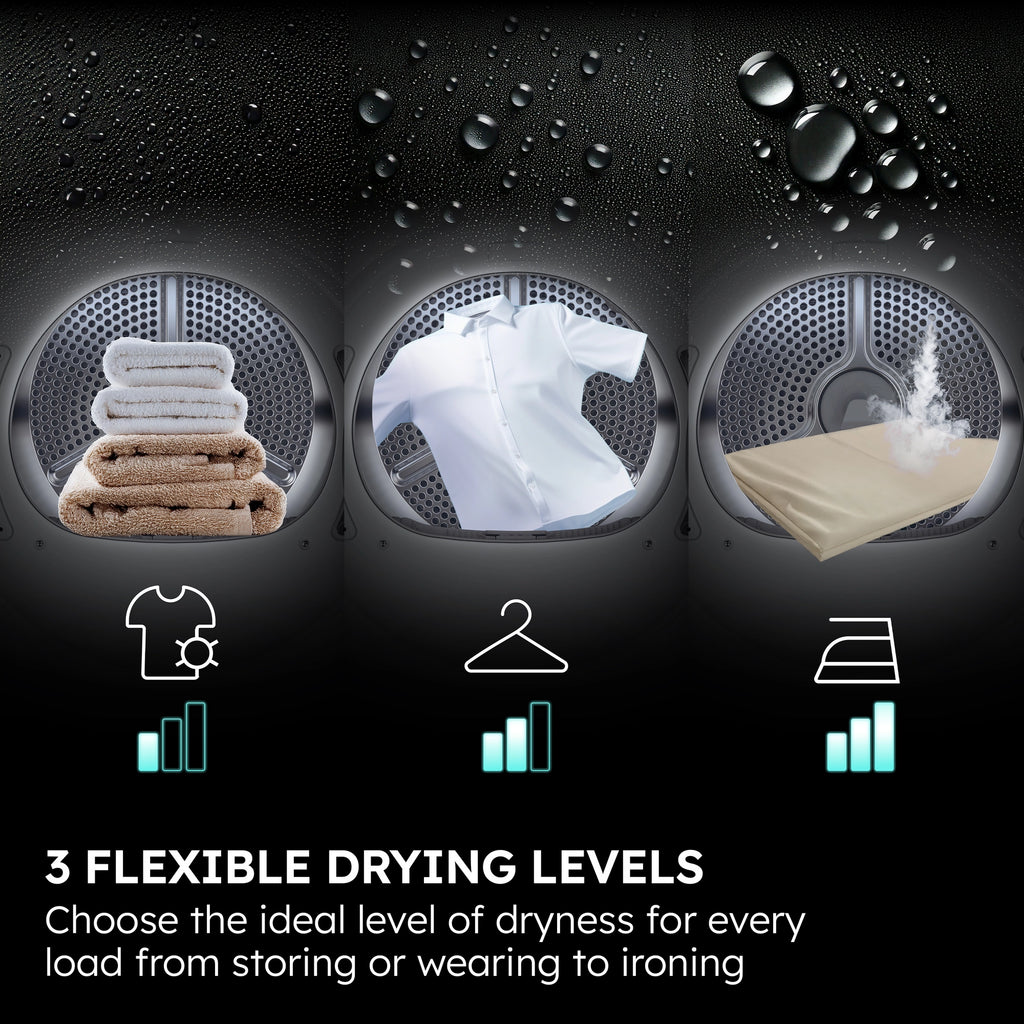 This appliance is perfect for busy households seeking hassle-free and reliable laundry solutions. With its Anti-Crease option, you can put your clothes directly into your wardrobe, free from wrinkles. The I-Time feature allows you to personalise the drying duration, adapting it to your specific requirements. Whether you're managing a family's laundry or simply need high-performance drying for your personal items, this tumble dryer is designed to meet diverse needs.