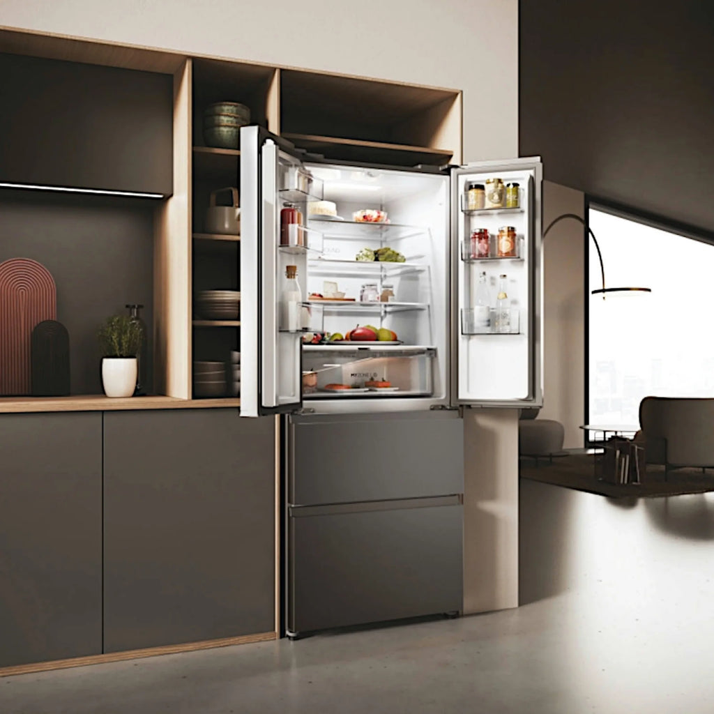 Haier’s HFR3718ENM frost fridge freezer offers an impressive combination of a large capacity, advanced cooling technology, and a sleek design. Featured in a dark inox finish, this model will look great in contemporary kitchens. Boasting a 402L net capacity, this appliance has two adjustable shelves, three door bins, and one salad crisper. Use the special MyZone drawer to store meat, fish, and other fresh produce at the optimal temperature. The freezer consists of two direct access drawers which make it easy to organise and find all your frozen goods. Plus, as it’s total no frost, you won’t spend hours defrosting while the fast freeze function quickly freezers your food for optimal freshness.