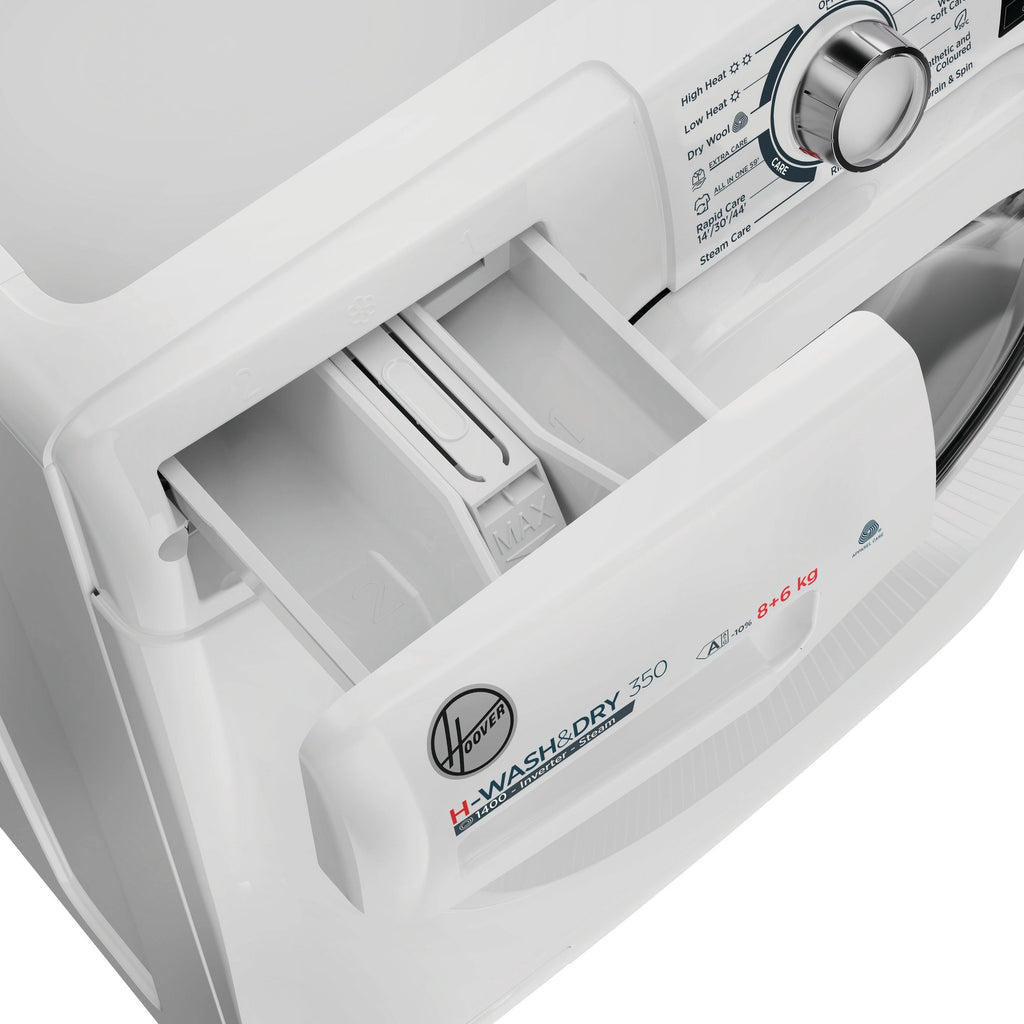 Take care of all the family’s laundry with Hoover H3DPS4866TAM6 H-WASH&DRY 350. A unique machine offering a complete set of Care cycles to keep your favourite clothes looking good for longer. The Allergy Care Pro cycle combines steam with a powerful rinse to remove allergens and bacteria from your fabrics. Paired with Steam Care Pro, which refreshes clothes and reduces wrinkles, you’ll have clean, fresh clothes in no time — and less ironing too.