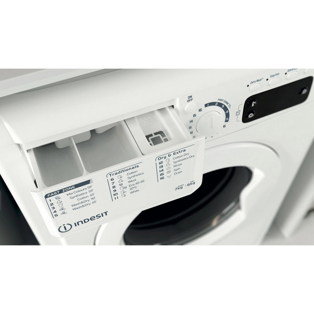 Sort the laundry hassle-free with the Indesit EWDE761483WUK freestanding washer dryer. Boasting a powerful 1400 rpm spin speed, this machine effortlessly handles your washing and drying needs. Ideal for busy lifestyles, it offers a convenient delay start feature, allowing you to schedule your laundry cycle up to 24 hours in advance—perfect for having clean clothes ready when you get home from work.