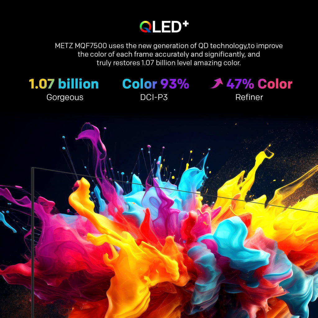 Introducing the Metz 50MQF7500ZUK, an impressive 50-inch QLED Smart TV that captivates with its stunning 4K resolution. This elegant black television serves as a striking centrepiece for any living space. Featuring advanced QLED backlight technology, it offers vivid colours and enhanced contrast, making movies, shows, and sports incredibly enjoyable.