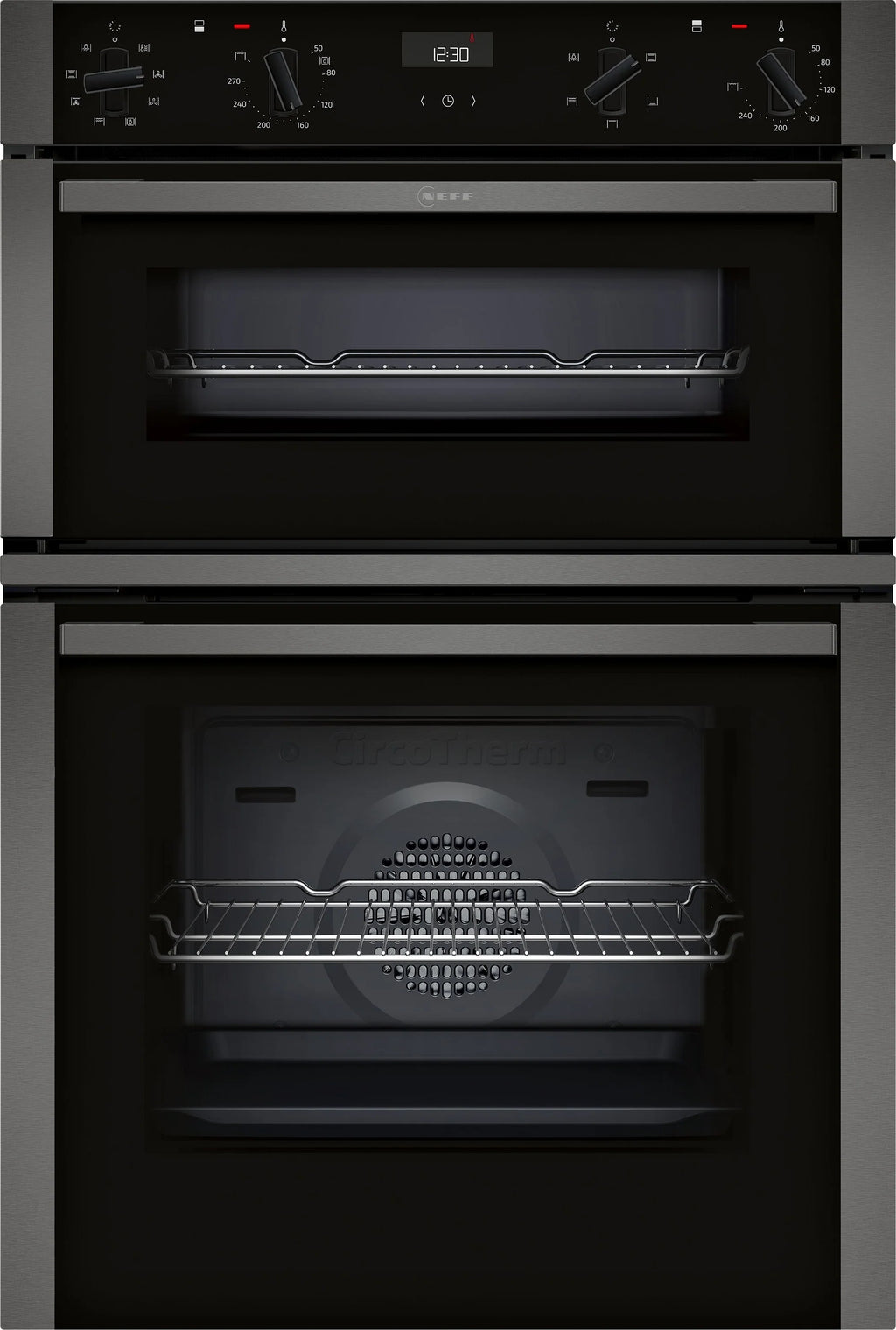 The Neff U1ACE2AG3B is a stunning built-in electric double oven that brings sophistication and functionality to your kitchen. Finished in an elegant graphite grey, this oven is designed to blend seamlessly with modern interiors while offering top-notch cooking performance.