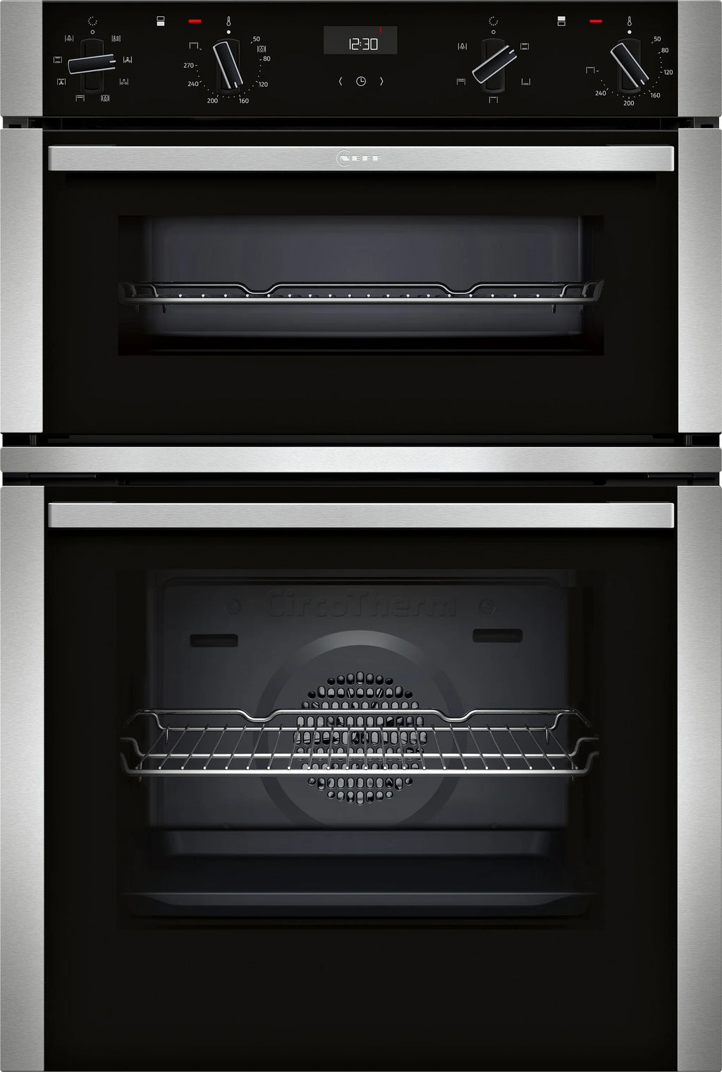 Introducing the Neff U1ACE2AN3B Built-In Electric Double Oven, designed to elevate your culinary experience with its stylish stainless steel finish. This oven features innovative CircoTherm technology which ensures uniform heat distribution for perfectly cooked meals every time. No more guesswork in the kitchen; this appliance provides consistent results whether you're baking, roasting, or grilling.