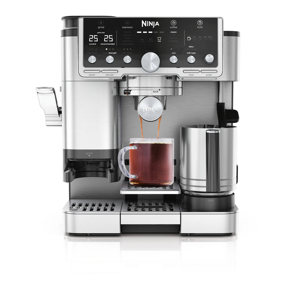 Additional Information | Pro 3-in-1 espresso, cold brew and filter coffee machine. Easy, hands-free micro foam: Auto froth wand steams & whisks milk at the same time. Barista Assist Technology: Auto presets, pressure, plus built-in scales & recommendations. Integrated tamper: Easily create perfect pucks with the pull of a lever. Includes: Portafilter & 3 baskets (Single, Double & Luxe), XL Froth Jug with Integrated Whisk, Built-in Grinder & Assisted Tamper, Cleaning Brush, Cleaning & Starter Kit & Recipe Guide. |
