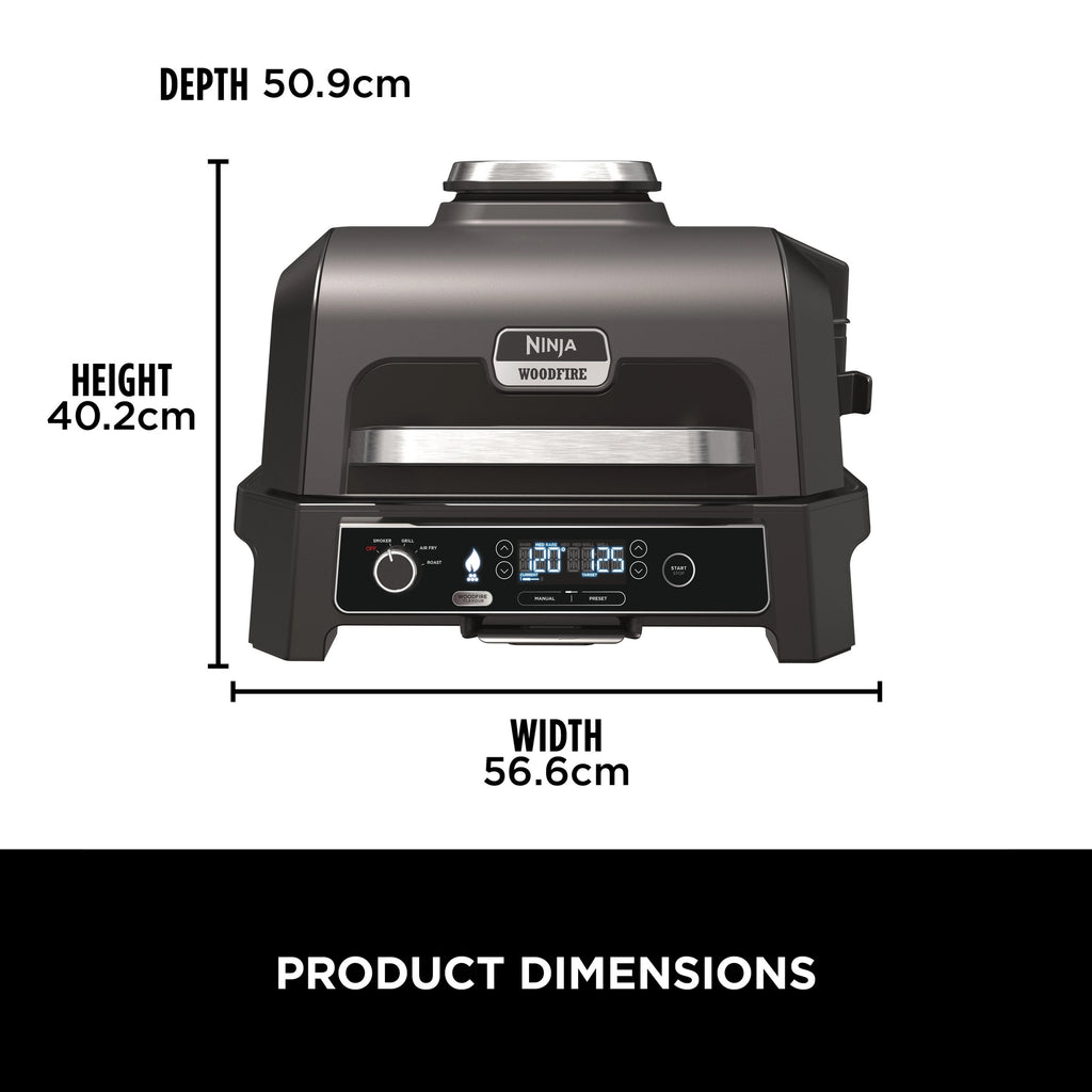 If you enjoy outdoor cooking, then the OG850UK from Ninja is the ideal appliance. More than a BBQ, this large-capacity model cooks even more of your favourite foods with 30% more cooking capacity*. Powered by electricity, it heats up quickly and is flavoured by 100% natural Woodfire pellets for an authentic smoky flavour. There are four ways to cook – Grill, Smoker, Air Fry, and Roast – to satisfy all your food cravings. What’s more, the built-in thermometer probe monitors your food’s temperature as it cooks, for perfect meat, fish, and chicken every time. Cook from frozen, anytime, anywhere with Ninja. *vs OG700 series