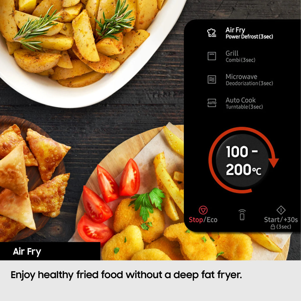 This innovative microwave offers remarkable convenience, with built-in Wi-Fi enabling voice commands through assistants like Samsung Bixby, Amazon Alexa, and Google Assistant. The SmartThings App allows remote monitoring and management of your cooking tasks, enhancing user-friendliness. Additionally, the Air Fry feature allows you to prepare healthier fried foods with minimal oil, providing a guilt-free alternative to traditional frying methods while ensuring delightful textures and flavours.