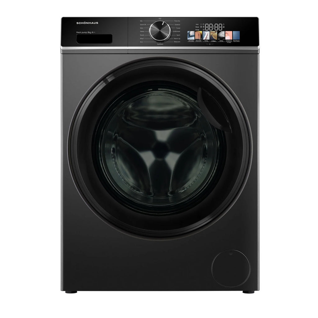 Dry your clothes effortlessly with the Schönhaus TDSHF018A3G tumble dryer. With advanced heat pump technology and an 8kg capacity, this appliance is ideal for busy households seeking energy-efficient performance and premium drying results.