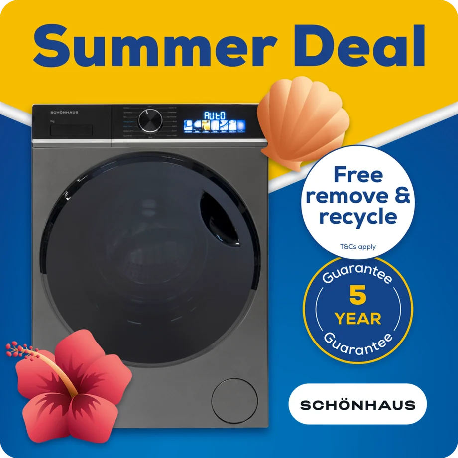 Offering uncompromising style and performance, the Schönhaus WMSF01914AG washing machine features a 9kg capacity to make laundry days easier. With a wide variety of programmes, it caters to all fabric types while maintaining gentle care.