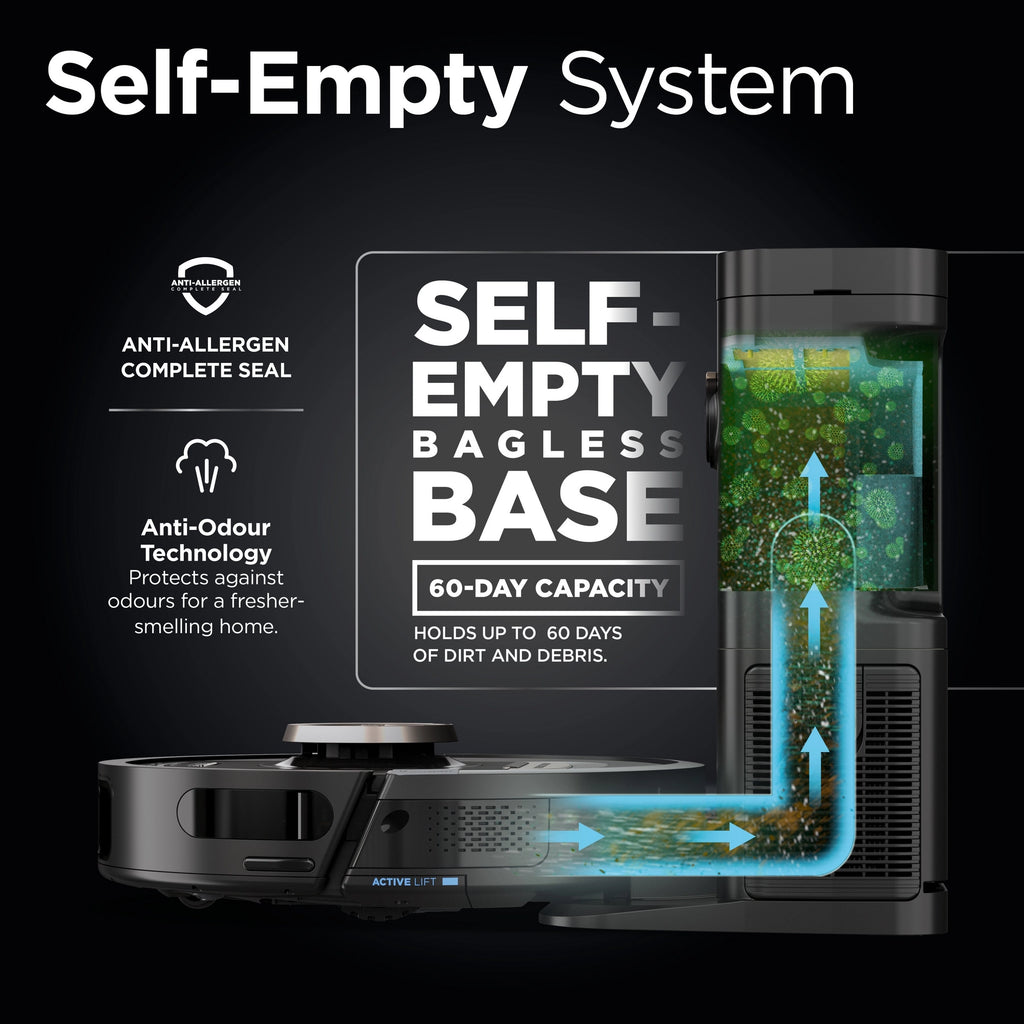 Revolutionise your cleaning routine with this robot vacuum cleaner from Shark. Featuring innovative PowerDetect technology, the RV2820VEUK detects dirt, floor type, and edges to optimise cleaning power. Simply customise your settings in the SharkClean app. NeverStuck technology actively lifts and lowers the vacuum, manoeuvering over obstacles easily without getting stuck. Plus, the bagless Self-Empty base holds up to 60 days of dirt and debris, automatically emptying itself after every clean. What’s more, this model is equipped with an Anti-Allergen Complete Seal, Anti-Odour technology, and 360° LiDAR vision which precisely maps your home.