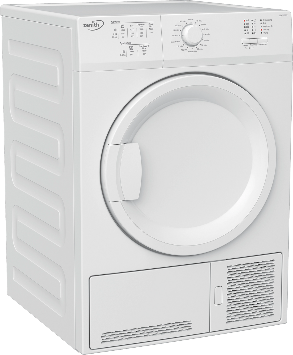 Fit your drying needs around your schedule with the Zenith ZDCT700W condenser tumble dryer. With a 7 kg capacity, 15 timed programmes, and user-friendly features, this freestanding model is ideal for medium-sized households. Exclusive to Euronics and Agent stores, you won’t find this model at any other retailer.